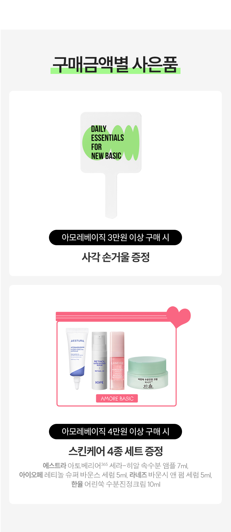 뷰티포인트 전액 결제 시 스페셜 사은품과 기프트카드 증정 대상에서 제외됩니다.